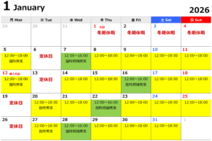 1月営業カレンダー